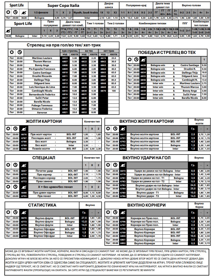 Наполи со Елиф Елмас го чека победникот од вечерашниот втор полуфинален дуел во Суперкупот на Италија. Пресметката меѓу Болоња и Интер ќе донесе нова возбуда, а Специјалниот сингл на Sport Life овозможува „милион“ опции за забава и обложување.