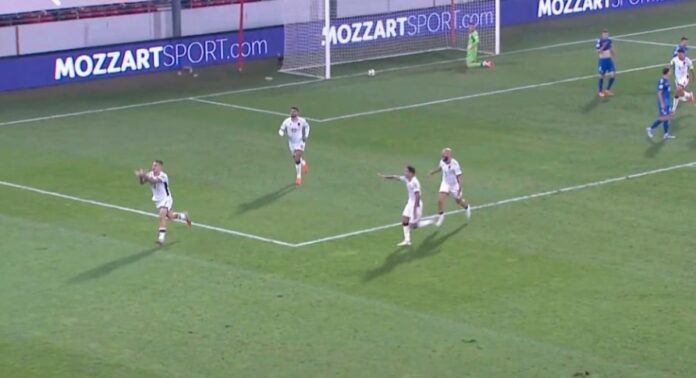 Во судиското продолжение од првото полувреме, Реј Манај се проби во мешаницата пред голот на домаќините и со прецизен удар го совлада Ѓорѓе Петровиќ, предизвикувајќи еуфорија кај гостите и тишина на трибините.