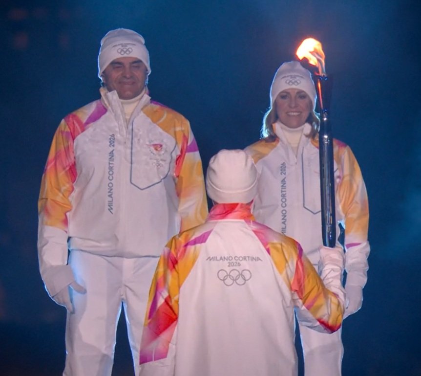 Deborah Compagnoni and Alberto Tomba ignite the Olympic Cauldron in Milano!!#MilanoCortina2026 #OpeningCeremony #Olympics pic.twitter.com/8mXofsKC5l