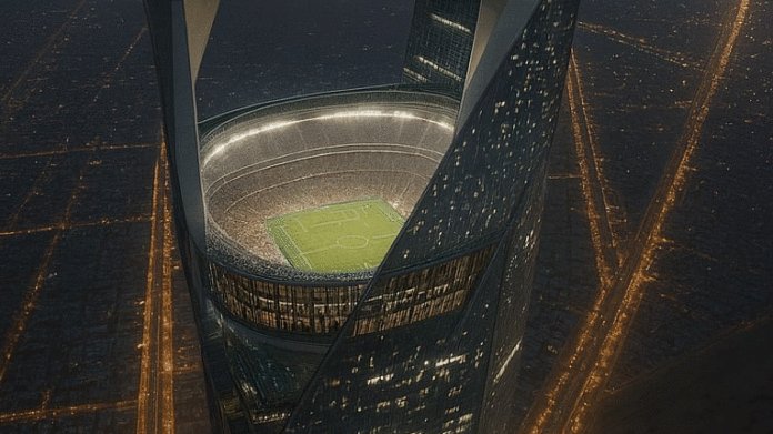 Саудиска Арабија која ќе биде домаќин на Светското првенство во фудбал во 2034 година, сериозно сака да направи нешто невидено и мечеви на Мундијалот да се играат на стадион кој би бил на висина од дури 350 метри над земјата.