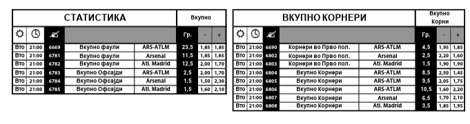 Имате богат избор на игри и поврзани со картони, корнери, шутеви, фаули, офсајди, прва замена, почетен удар, итн.