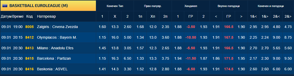 Квотата од 1.15 за победа на Олимпијакос над Баерн Минхен во вечерашниот меч од Евролигата доволно говори кој е фаворит во тој дуел, но похрабрите би можеле да ризикуваат и да одиграат на триумф на германскиот тим кој е во налет.
