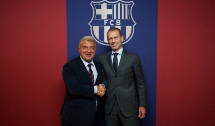 Лапорта е се подалеку од Флорентино Перес, кој важи за лидер на групата, а се поблиску до претседателот на УЕФА, Александар Чеферин, кој беше присутен на „Монжуик“ на мечот против ПСЖ.
