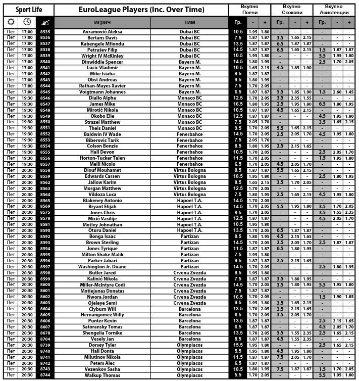 Во Sport Life има богата понуда на игри. Секако, тука се опциите и да уплатите на број на поени, скокови и асистенции на голем број кошаркари, како и на број на скокови, асистенции, погодени тројки и направени лични грешки за секој тим посебно.