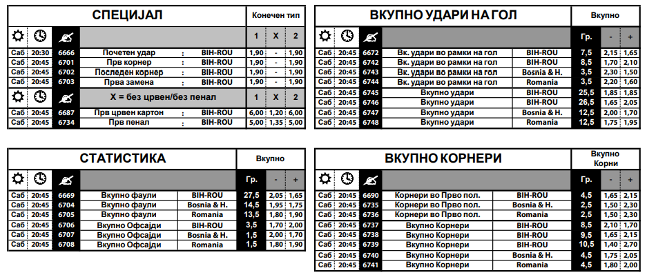 Босна и Херцеговина на свој терен во Зеница игра против Романија во меч кој може многу да значи во квалификациската група за пласман на СП 2026. БиХ е на второто место со 13 бодови, а Романија е трета со 10. Тоа значи дека ако БиХ победи, сигурно ќе има обезбедено место во баражот, но ќе остане и со шанса за директен пласман на Мундијалот.