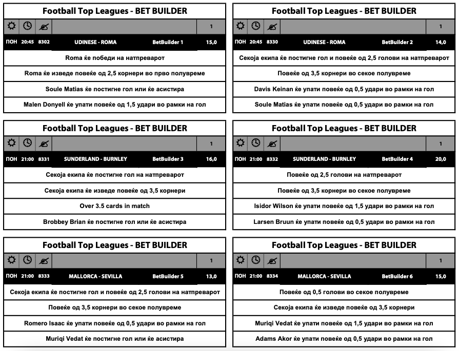 Три меча со по две опции, односно вкупно шест опции со квоти кои достигнуваат и до неверојатни 20.00 се дел од Бет билдерот.