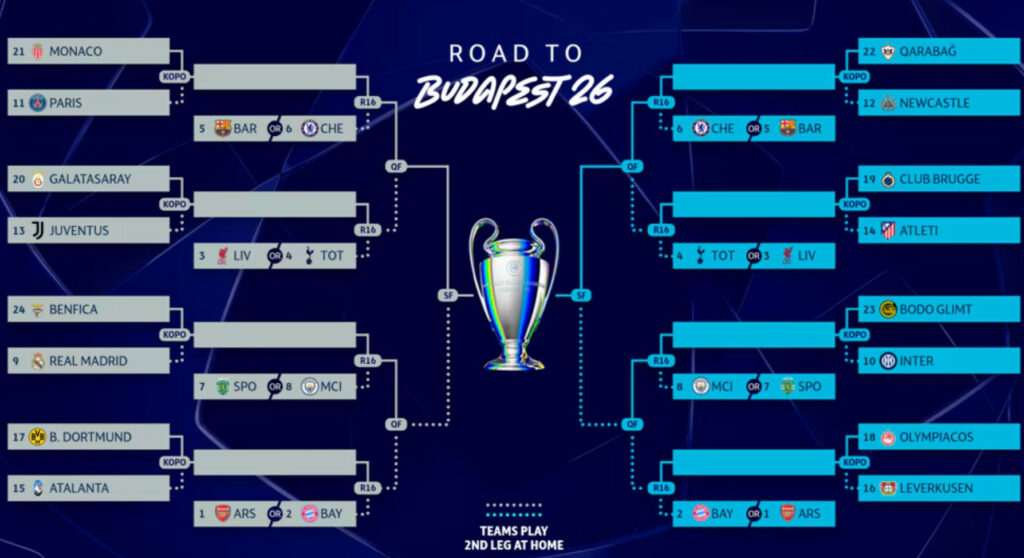 Вечерва добивме уште четири учесници во осминафиналето на Лигата на шампионите за сезоната 2025/26, тоа се Бодо/Глимт, Њукасл, Баер Леверкузен и Атлетико Мадрид.