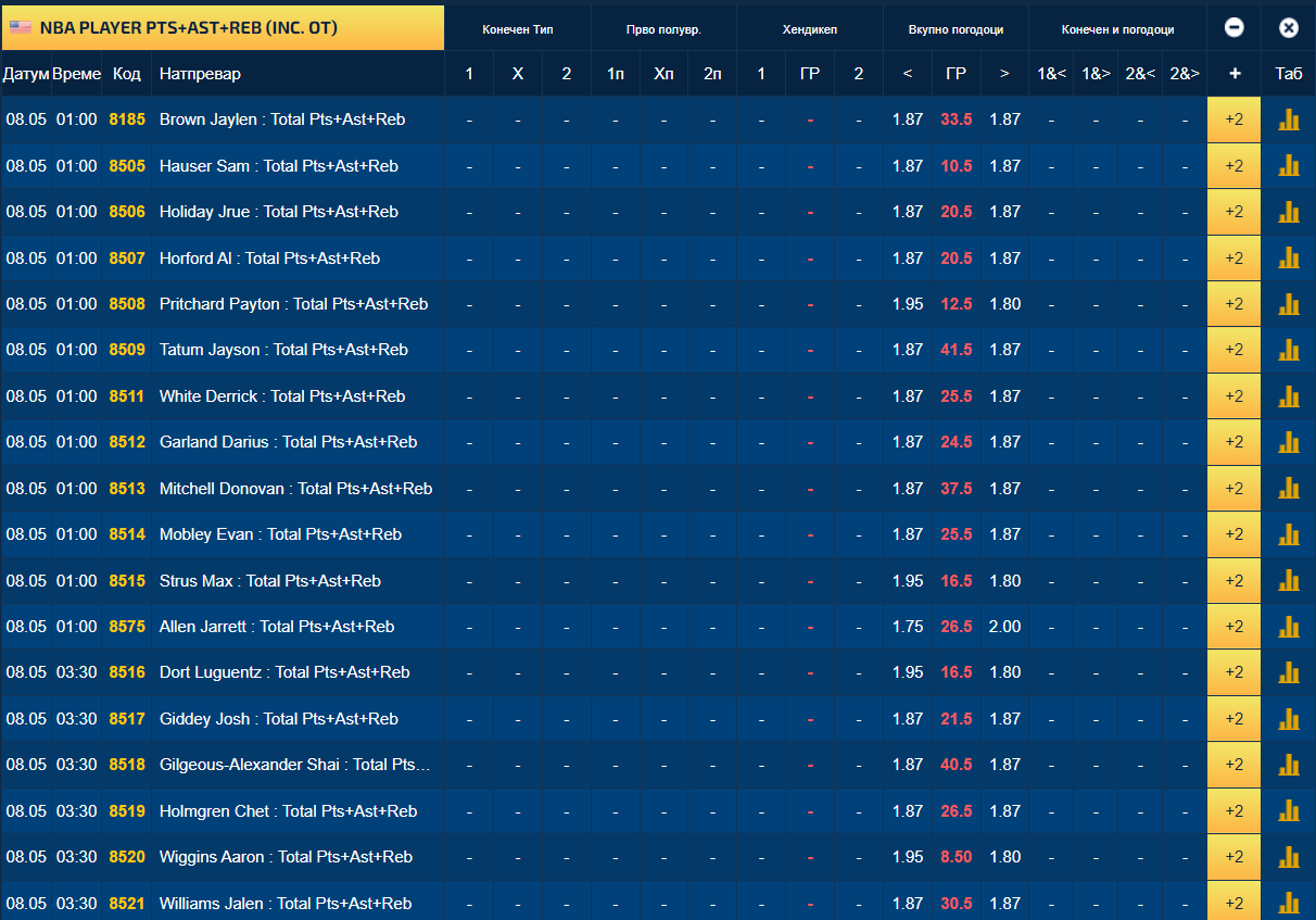 За двата меча кои се играат ноќеска има и огромна понуда за кошаркарките кои ќе бидат на теренот. Во „плус-минус“ понудата може да се обложите за бројот на поени, скокови, асиситенции, но и вкупниот скор поени+скокови+асистенции.
