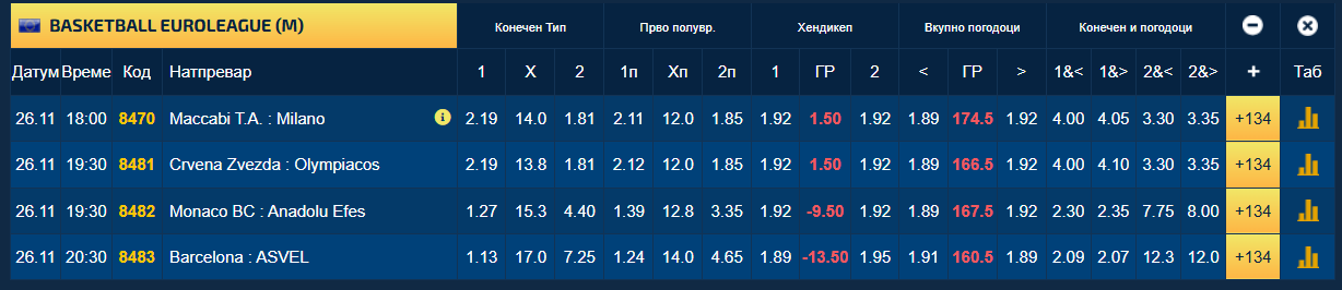 Во понудата за денешните четири средби има и голем број кошаркари за играта „плус-минус“ поени.