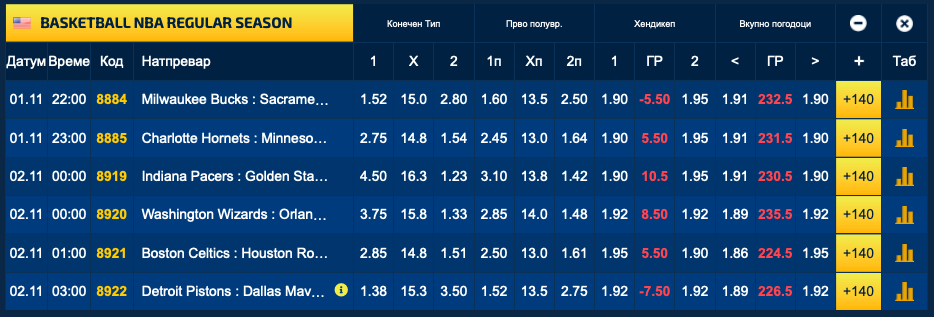 Милвоки и Детроит ја бранат честа на домашните екипи според квотите во Sport Life, додека гостински победи се очекуваат од Минесота, Голден стејт, Орландо и Хјустон.