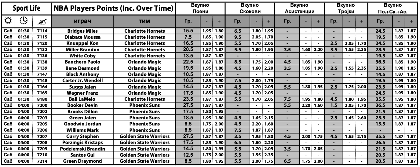 Во Sport Life може да најдете специјална проширена понуда кога се работи за кошаркарите и играта „плус-минус“. Најпопуларната игра меѓу играчите може да се одигра на поени, скокови, асистенции, тројки, но и вкупен збир од поени, скокови и асистенции. Комплетната понда може да ја најдете ТУКА.