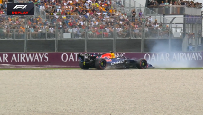 This is the moment where the Red Bull driver spins into the wall at Turn 1 👇#F1 #AusGP pic.twitter.com/M2XKoapEMl