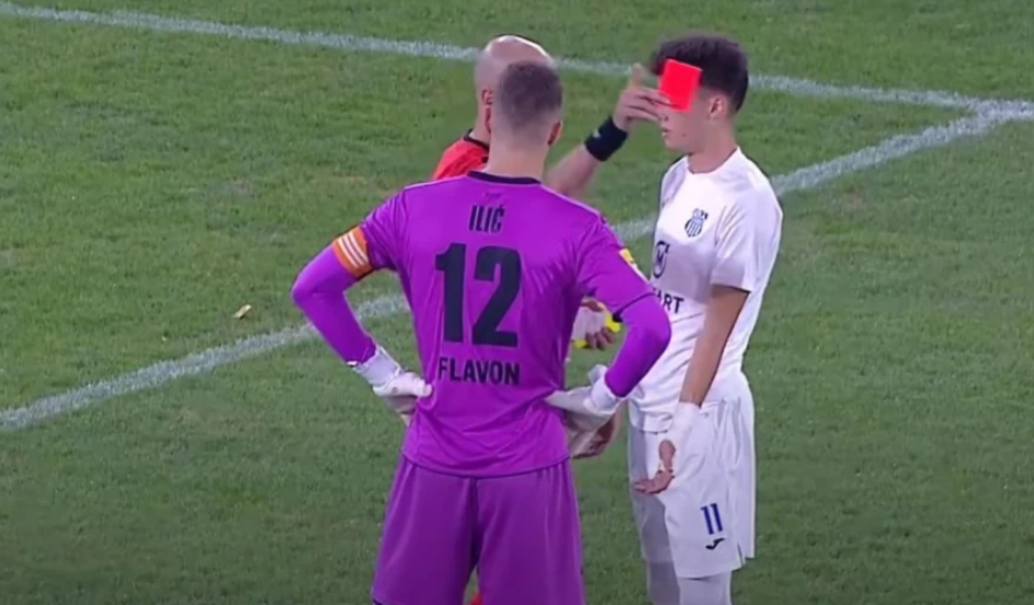 БИзарната ситуација по која беше покажан црвен картон може да ја видите на 8Ч40 минута на видеото.