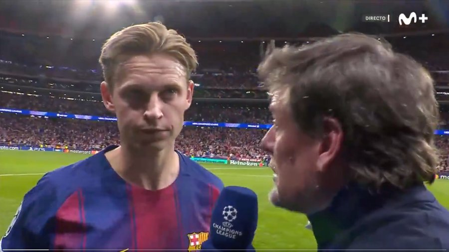 „Мислам дека одигравме добар натпревар. Дадовме сѐ од себе, се обидовме апсолутно сѐ. Чувствувам дека среќата едноставно не беше на наша страна. Мора да продолжиме напред затоа што сезоната уште не е завршена. Имаше многу чудни одлуки, посебно на првиот меч. Моментот кога играчот на Атлетико ја фати топката со раце во својот шеснаесетник го смени текот на овој двомеч“, изјави Де Јонг по синоќешната елиминација на Барселона во четвртфиналето од ЛШ.