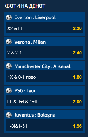 Пет супер интересни средби се дел од понудата во Квоти на ден, а ако сите понудени комбинации се одиграат заедно на еден тикет, вкупниот коефицинет кој ќе го добиете е 39.55.