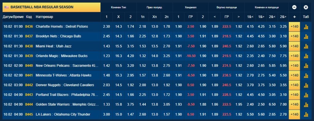 Покрај стандардните квоти, тука е и омилената игра „плус/минус поени“ на ефектот на кошаркарите, а вечерва ги има дури 105.
