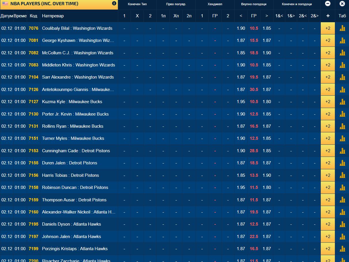 Огромна е понудата за играта „плус-минус“ поени на кошаркарите кои треба да се појават вечерва на паркетите во НБА-лигата. Дури 89-мина играчи се во оваа понуда, па експертите за НБА-лигата сигурно ќе најдат неколку „пеналчиња“ кои ќе треба да ги искористат за добитен тикет.