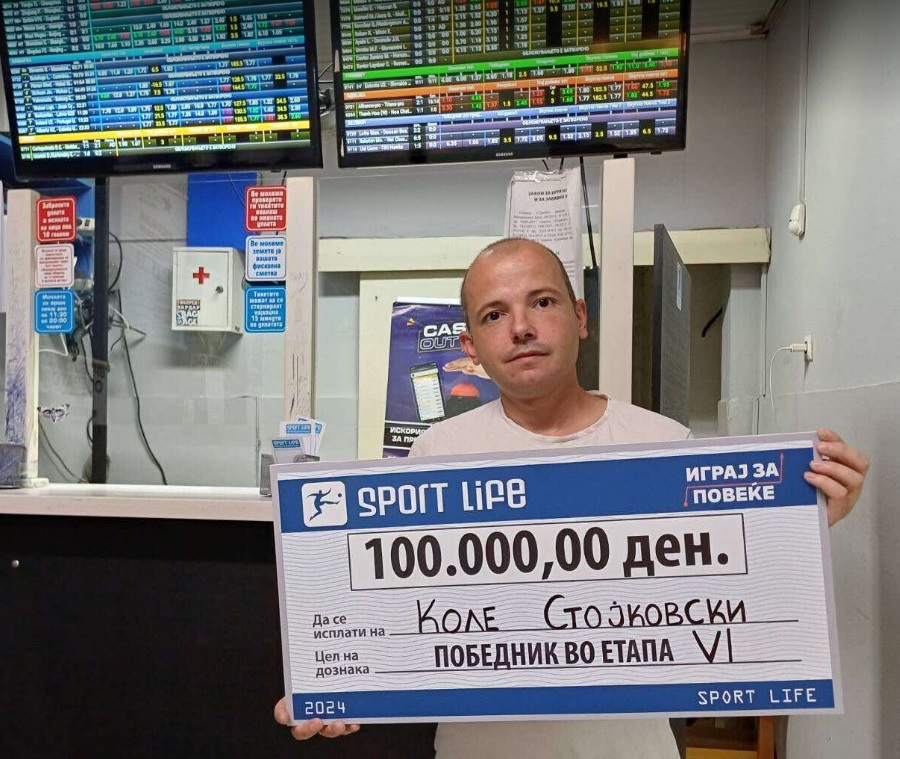 Коле Стојковски е победник на шестата етапа на акциската понуда на Sport Life, „Играј за повеќе“ со погодена највисока квота од 2237.73. Со овој добитен тикет убедливо го освои првото место и сосема заслужено освои 100.000 денари од Sport Life.