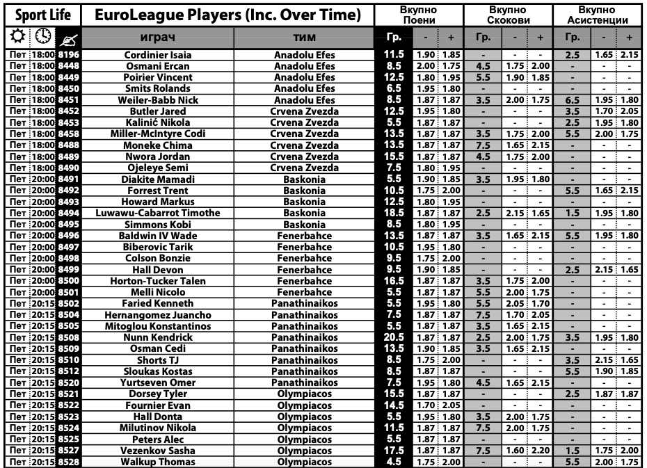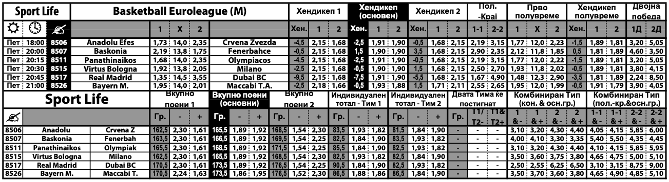 Богата е понудата и кај кошаркарите за играта „плус-минус“, која може да се одигра на поени, скокови и асистенции. Комплетната евролигашка понуда на Sport Life може да ја најдете ТУКА.