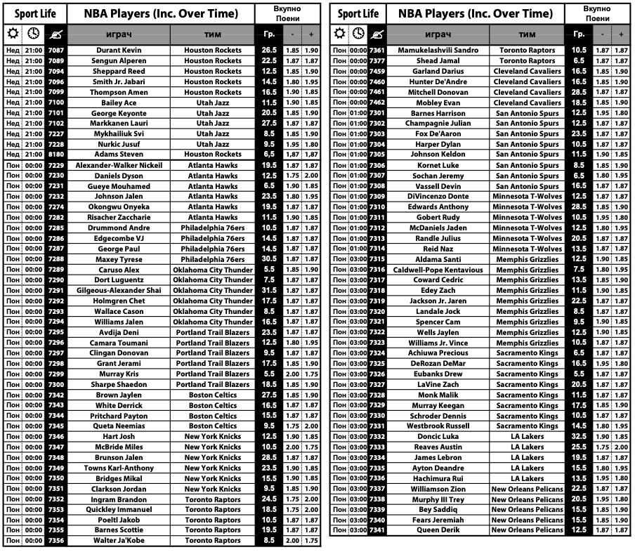 Лука Дончиќ на последните пет меча даваше по најмалку 33 поени, а вечерва границата е поставена на 32.5 поени. Освен Дончиќ, дел од понудата на Sport Life за најпопуларната игра – „плус-минус“ поени се и уште стотина кошаркари. Комплетната понуда може да ја погледнете ТУКА.
