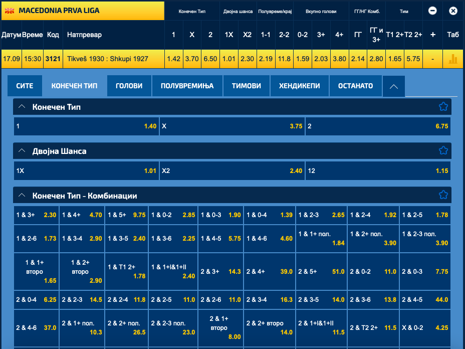 На вториот денешен натпревар, Тиквеш го пречекува „фенерџијата“ Шкупи, единствената екипа која сè уште нема освоено ниту бод оваа сезона. Јасно, фаворитската улога ја имаат кавадарчани со квота за победа од 1.42 во понудата на Sport Life, додека изненадувањето на гостите од скопски Чаир има квота од 6.50.
