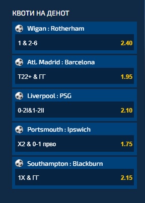 Портсмут се среќава со Ипсвич и доколку гостите не загубат, а во првото полувреме има најмногу еден гол, квотата на денот е 1.75.