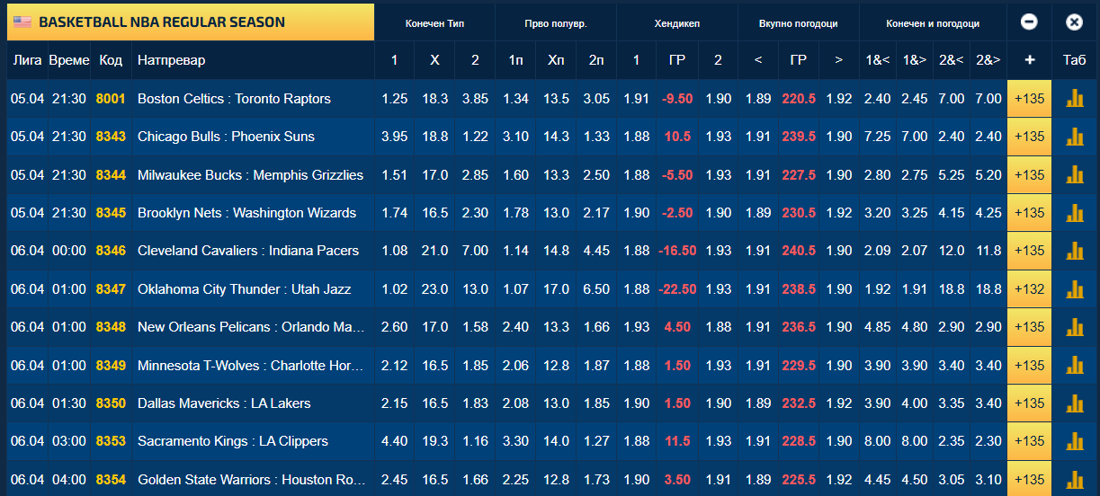 Делува малку неверојатно, но има две средби на кои нема дилеми кој ќе победи туку со колку разлика ќе биде тоа. „Хендикепот“ на Оклахома против Јута е дури на 22,5 поени, а Кливленд против Индијата треба да слави со над 16,5 поени за да биде „кец со хендикеп“.