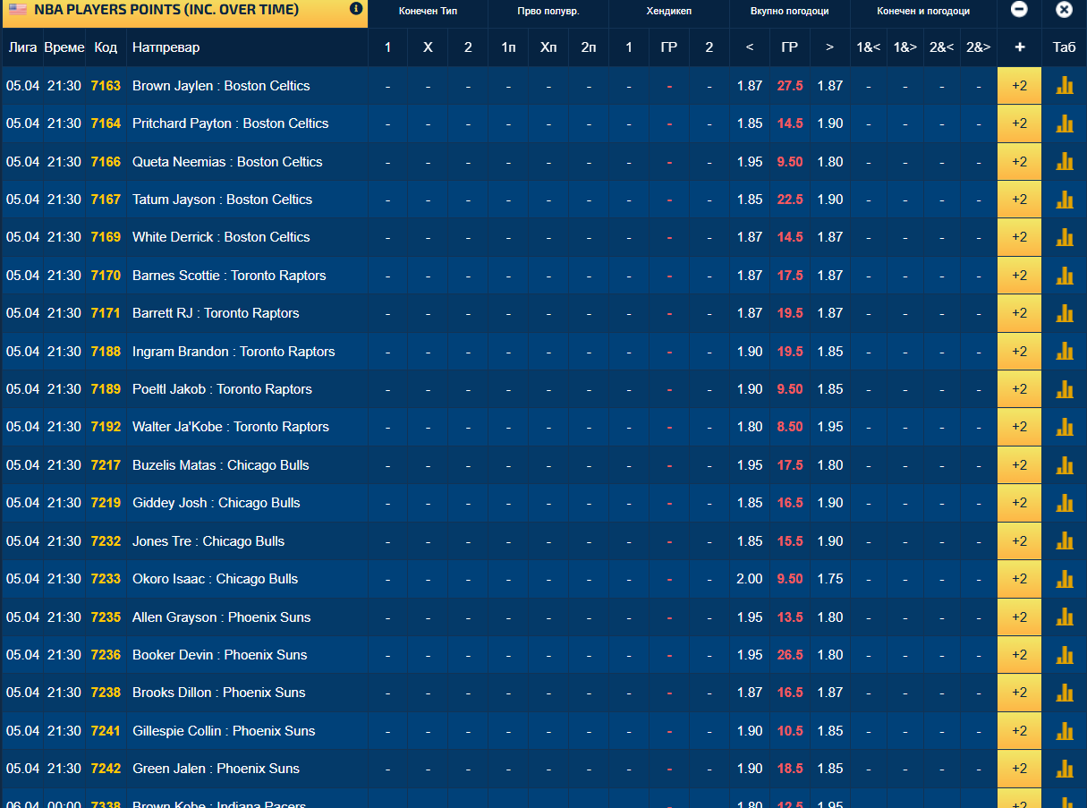 Во понудата има и голем број на НБА играчи за популарната игра „плус-минус“ поени.