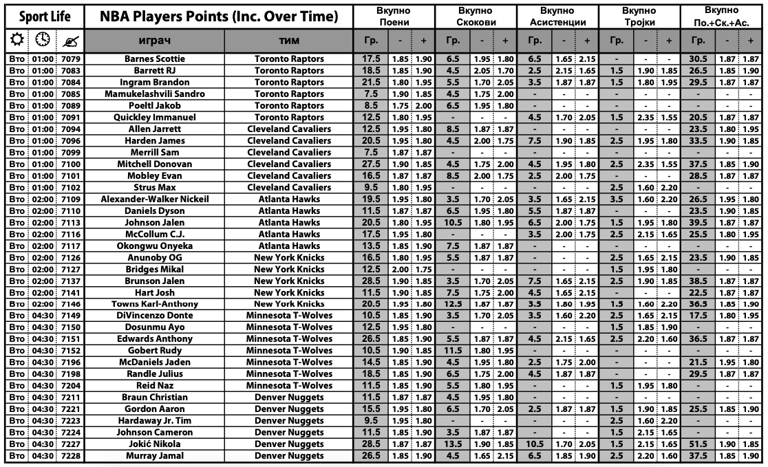 И за овие натпревари има специјална понуда за кошаркарите и најпопуларната игра меѓу типувачите – „плус-минус“ на поени, која може да се одигра на поени, скокови, асистенции и вкупно тројки, но и збир од поените, скоковите и асистенциите. Комплетната понуда може да ја најдете ТУКА.