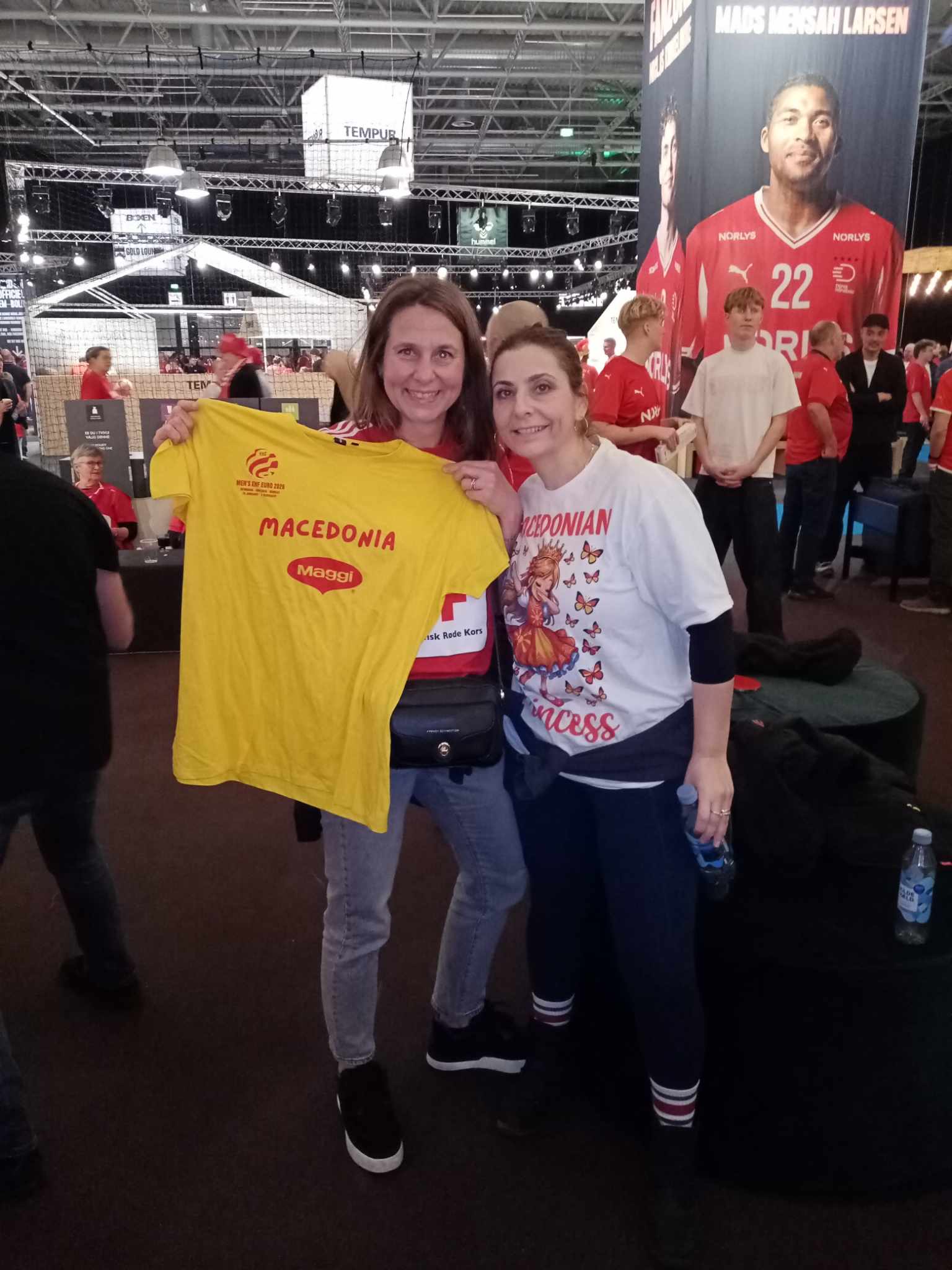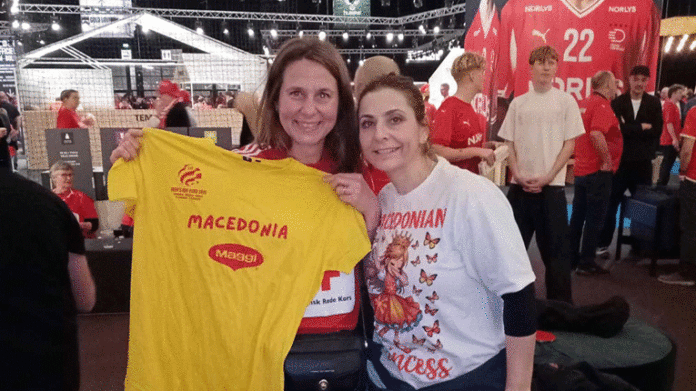 Александра Гаралоска е родена во Прилеп, а последните години живее и работи во Лондон. Не ѝ беше тешко да дојде до Хернинг да ја бодри македонската машка ракометна репрезентација. Таа ја натера својата пријателка да позира со македонска навивачка маица.