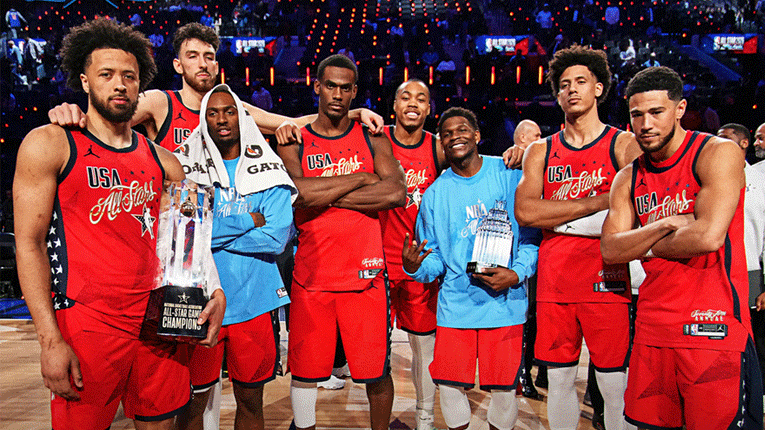 Екипа составена од Скоти Барнс (Торонто), Девин Букер (Феникс), Кејд Канингем (Детроит), Џејлен Дурен (Детроит), Ентони Едвардс (Минесота), Чет Холмгрен (Оклахома), Џејлен Џонсон (Атланта) и Тајрис Макси (Филаделфија) победи на годинешниот олстар во НБА лигата кој се играше во Лос Анџелес.