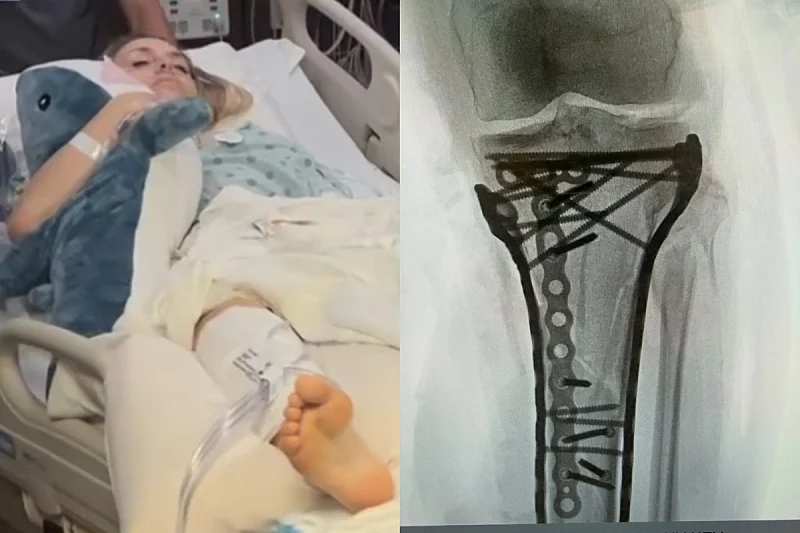 „Операцијата помина успешно. Траеше повеќе од шест часа. Како што може да видите потребни беа многу плочки и завртки за да се состави сѐ, но д-р Хакет заврши неверојатна работа“, напиша Вон покрај снимката на која јасно се гледа металната структура што сега ја држи коската на место.