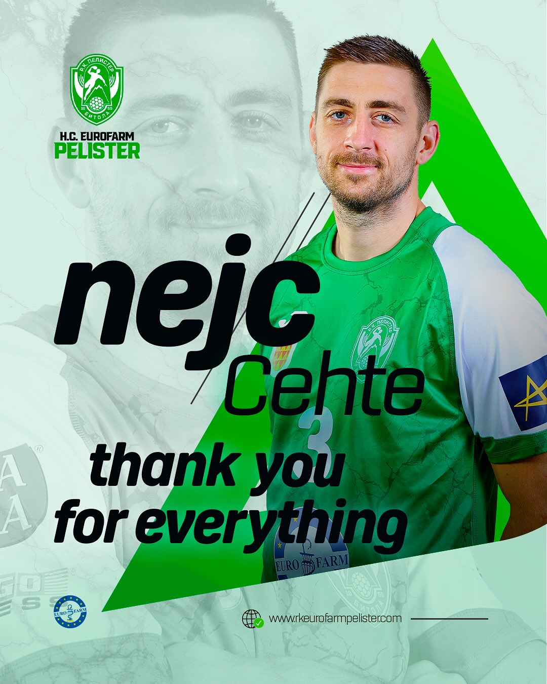 Словенечкиот ракометар Нејц Цехте веќе нема да игра за Еурофарм Пелистер, битолскиот клуб денеска официјално му се заблагодари.