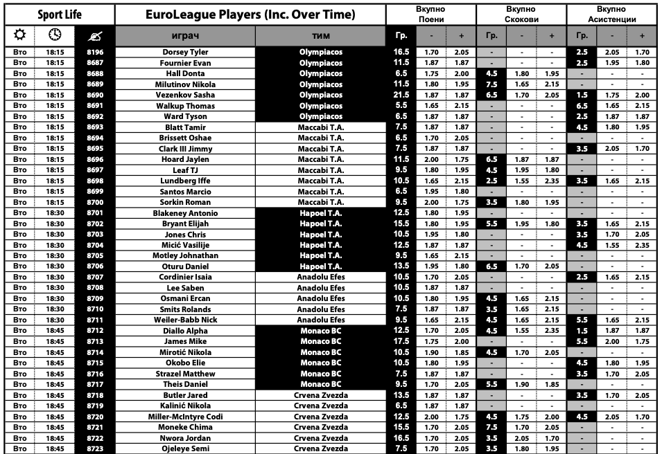 Во Sport Life има фантастична понуда и кај кошаркарите и играта „плус-минус“ на поени, скокови и асистенции. Тука може да најдете над 110-мина кошаркари, а комплетната понуда е на овој ЛИНК.