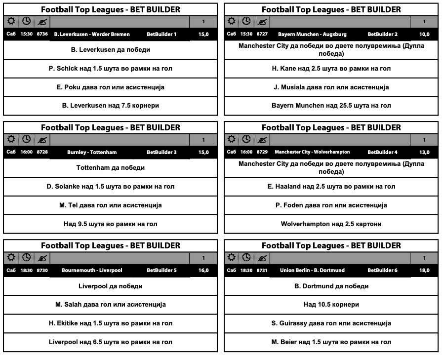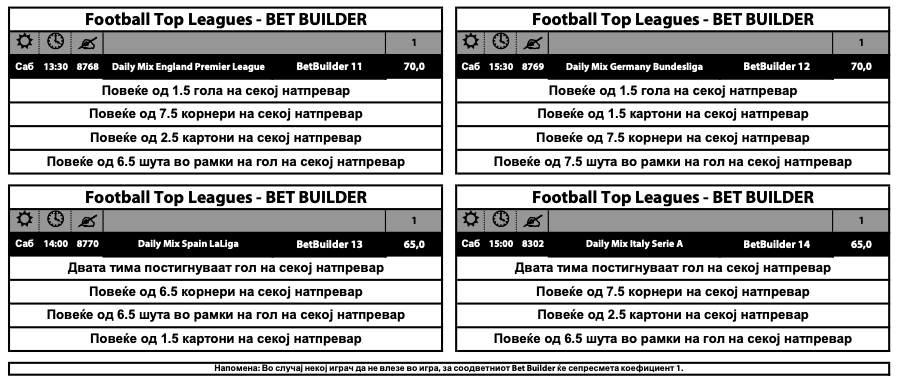 Помеѓу 14-те опции може да најдете десет различни натпревари, но и четири дневни микса кои имаат квоти од 65.00 до 70.00.