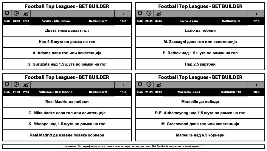 Она што не смее да се пропушти денес е фантастичната Бет билдер понуда во Sport Life со квоти кои достигнуваат и до 70.00.