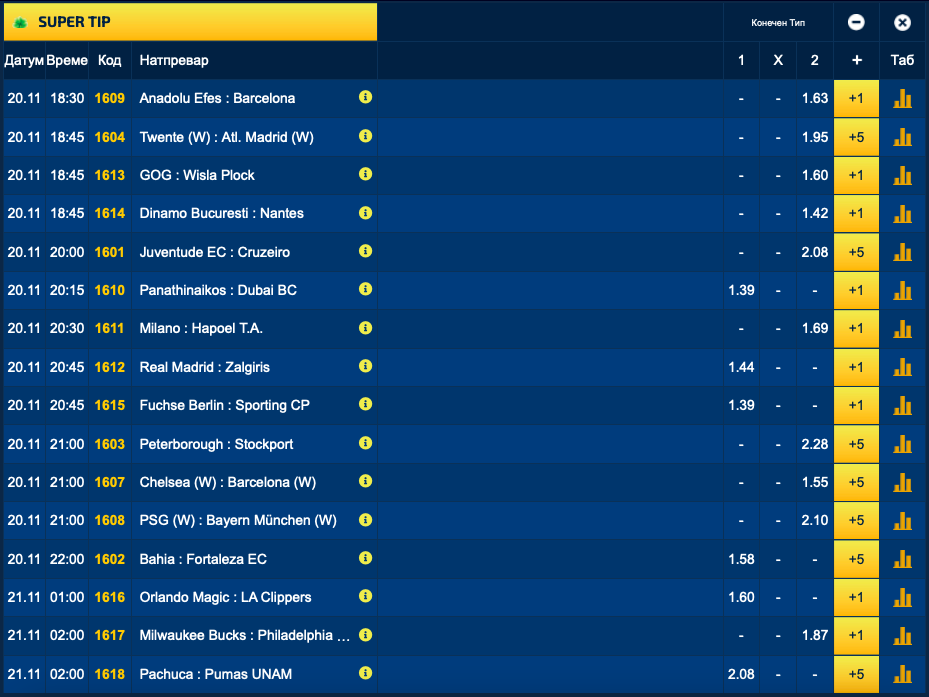 Првиот натпревар во понудата започнува во 18:30 часот, што значи дека имате доволно време да размислите, да го одберете парот со кој ќе ја зголемите добивката на вашите тикети и да ги посетите уплатните места на Sport Life.