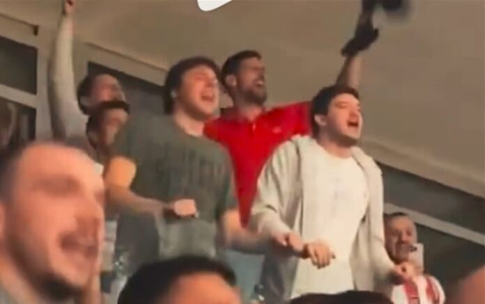 Новак тука започна да скока со останатите во ложата и вртеше маица што ја имаше со себе.