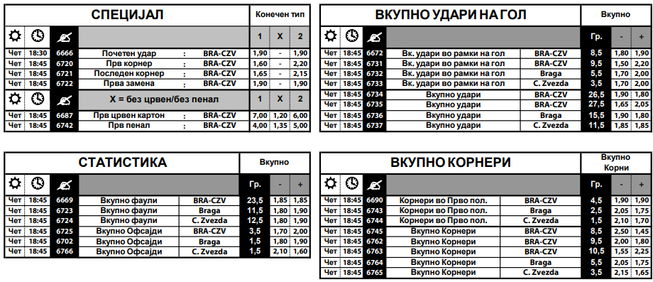 Португалскиот тим Брага одлично започна во Лига на Европа и по првите две кола има две победи и тоа без примен гол. Вечерва очекуваат да го задржат перфектниот биланс, но ќе имаат голем предизвик, затоа што им гостува Црвена ѕвезда.