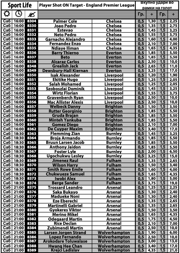 Саботната фудбалска понуда во Sport Life е збогатена и со 50-тина фудбалери за играта „удари во рамки на гол“. Играта нуди две опции, над 0,5 и над 1,5 удари, а секако дека најголеми фаворити се големите ѕвезди на Челзи, Ливерпул и Арсенал.