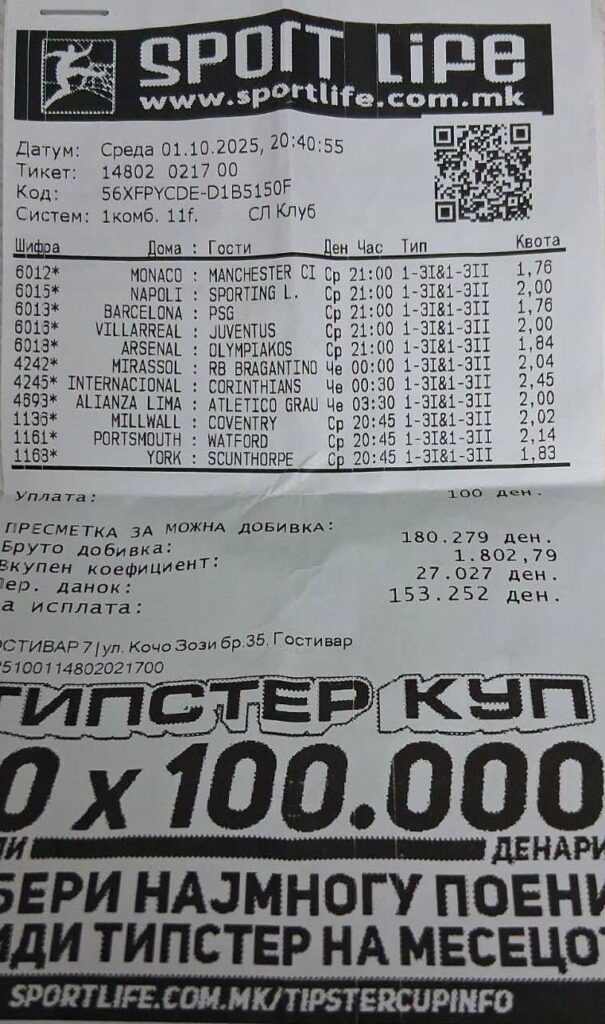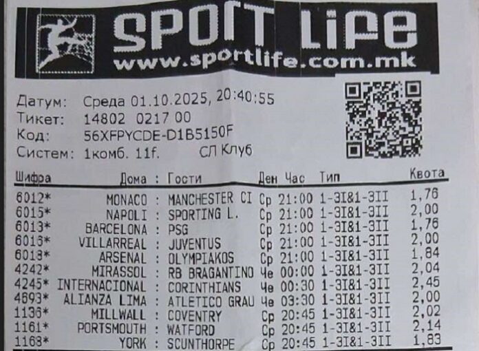 Среда беше среќен ден за еден редовен обложувач во Sport Life. Гостиварец успеа да стигне до добивка од 2.500 евра (153.252 денари) на навидум многу едноставен начин. И тоа со скромна уплата од 100 денари.