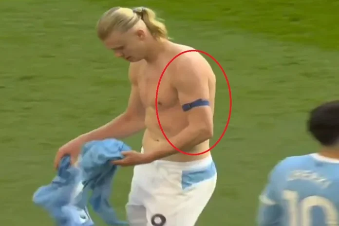 Освен голот што го даде, Халанд вниманието го привлече и со еден детаљ кој немаше директна врска со играта. На теренот се водеше жестока борба, особено помеѓу Халанд и стоперот на Арсенал, Габриел. Во еден од дуелите, Бразилецот успеа да ја искине маицата под дресот на Норвежанецот, што го принуди напаѓачот на Сити на кратко да го напушти теренот и да ја смени опремата. Во тој момент можеше да се види дека носи мала направа на надлактицата.