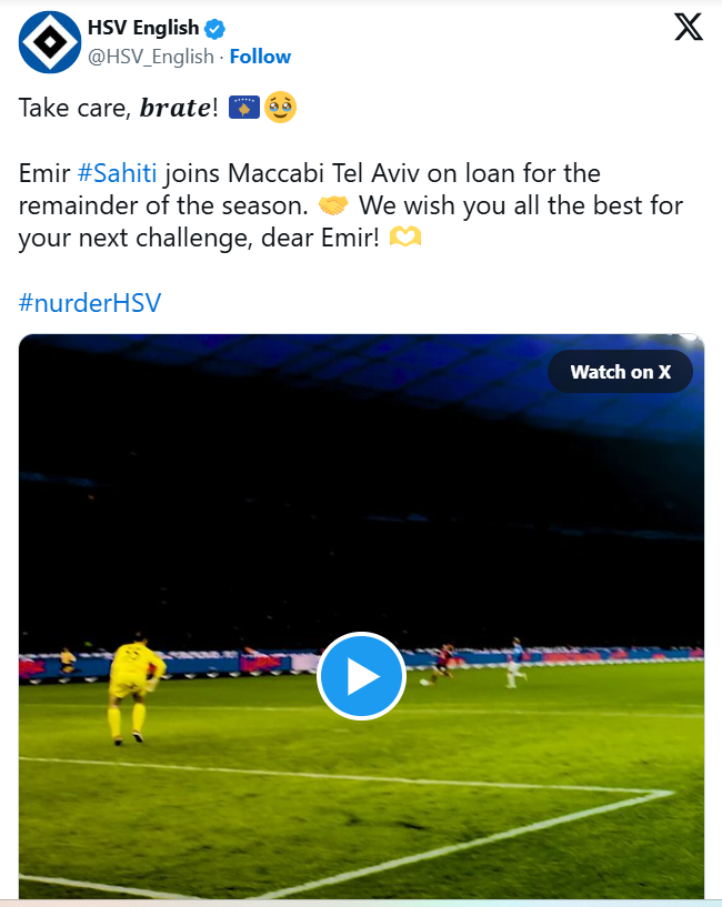 Косовскиот интернационалец Емир Сахити кој во минатото три сезони играше и за Работнички, од Хамбургер се пресели на позајмица во Макаби Тел Авив.