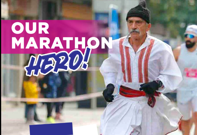 Едноставно Благоја кој е познат по прекарот Бале Брзи е вистинска инспирација за сите генераци. Тој не само што ја истрча маратонската трка, туку тоа го направи облечен во народна носија што секако прави дополнителен проблем при трчањето.