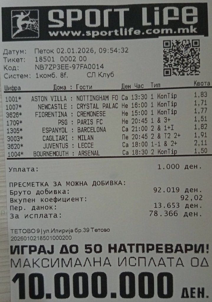 Првиот Хуманитарен тикет во 2026 година ќе биде комбинација на натпревари кои ги одбраа новинарите од редакцијата на СпортМанија. Нашата тактика е да одиграме на „сигурно“ и на победи на фаворити.