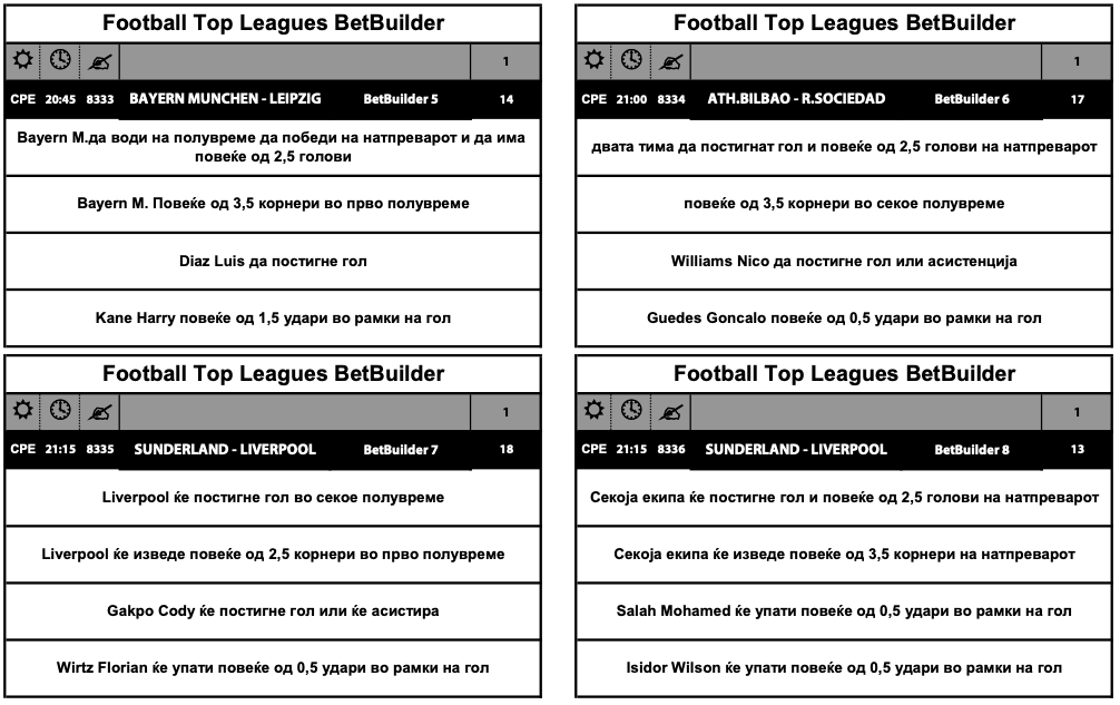 Баерн Минхен го пречекува Лајпциг со квота од 14.00 во Бет билдерот, а баскиското дерби во Купот на Шпанија има квота од 17.00.