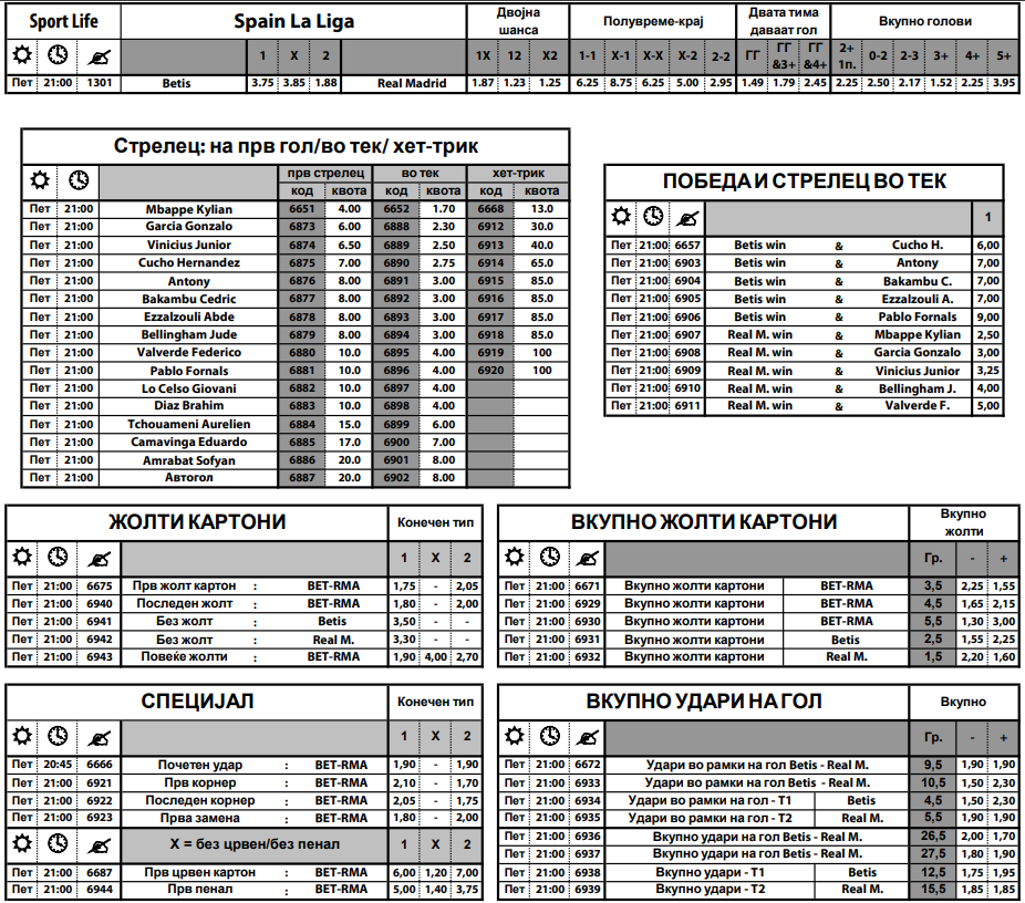 Затоа, за еден ваков дерби-дуел има специјална понуда во Sport Life. Килијан Мбапе, кој е ударна игла во нападот на Реал, е главен фаворит за стрелец на првиот гол, а веднаш потоа следува Гонзало Гарсија, кој блесна на последната пресметка со Реал и постигна хет-трик. Сега Гарсија да даде три погодоци за Реал е со квота дури од 30.