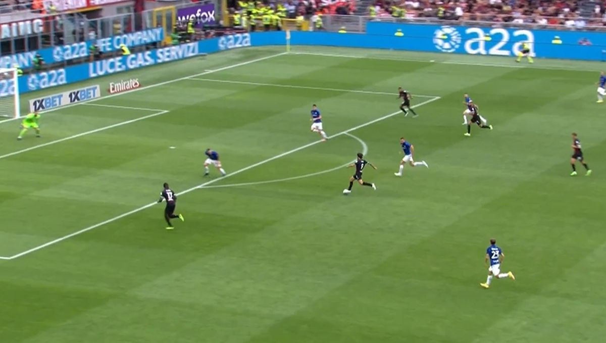 Во 28 минута, Милан направи добар контра напад, кој со гол го круниса Рафаел Леао.