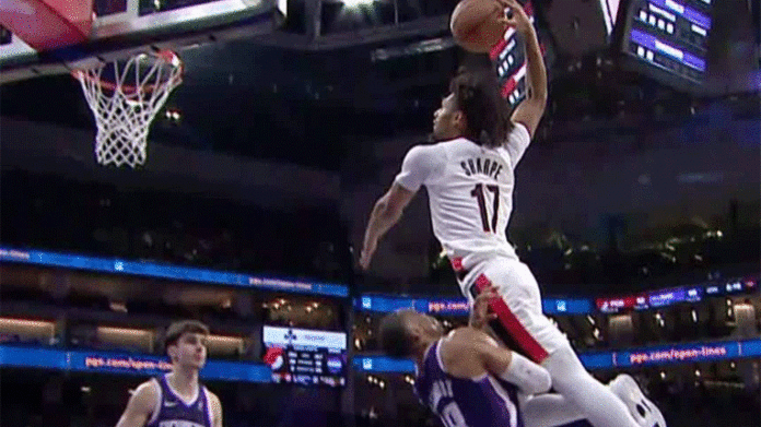 Најатрактивното забивање на вечерта го имаше Шедон Шарп кој го прелета Расел Вестбрук на најнеефикасниот меч во кој Портланд го победи Сакраменто со 98-93.