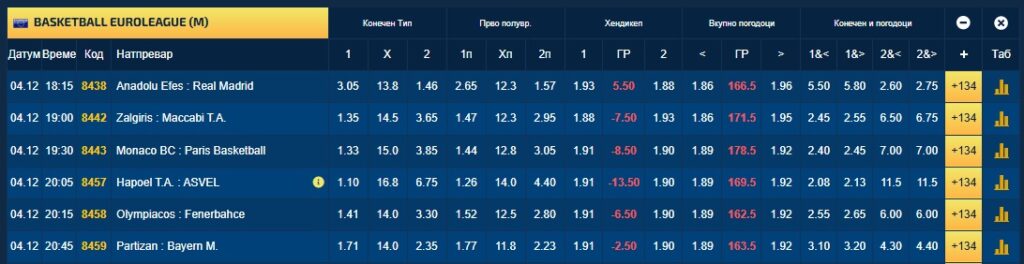 Покрај стандардните квоти, подготвена е и огромна понуда на поентерскиот ефект на кошаркарите.